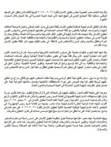 تؤكد مصر بهذه المناسبة مواصلة دعمها لـ “منظومة حقوق الإنسان” في إطار دستورها الوطني والاتفاقيات الدولية التي انضمت إليها، مع استمرار العمل لتوفير بيئة آمنة تُعلي من شأن حقوق الإنسان وتحقق التنمية الشاملة.